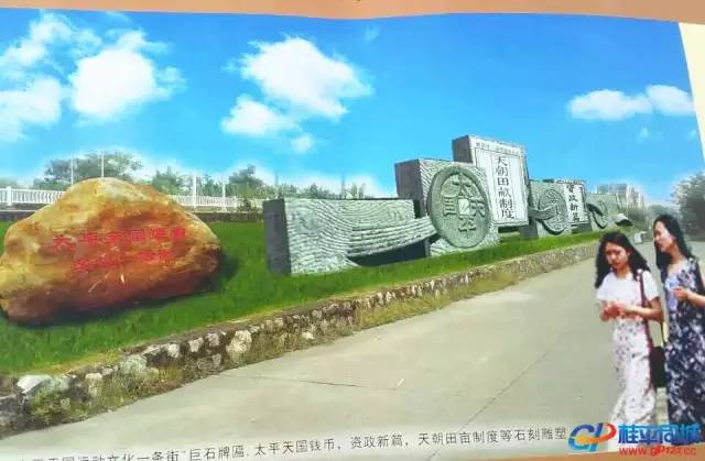 2015年6月2日,桂平市长潘汉胜到我市“太平天国运动文化一条街”项目现场,听取了市旅游局和设计单位的设计方案。“太平天国运动文化一条街”项目将以我市自来水厂围墙作为石雕人物艺术走廊。 太平天国运动文化一条街效果图